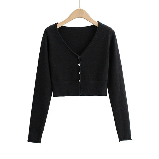 Long Sleeve Knitted Cardigan Bottoming Slim Fit Short Top